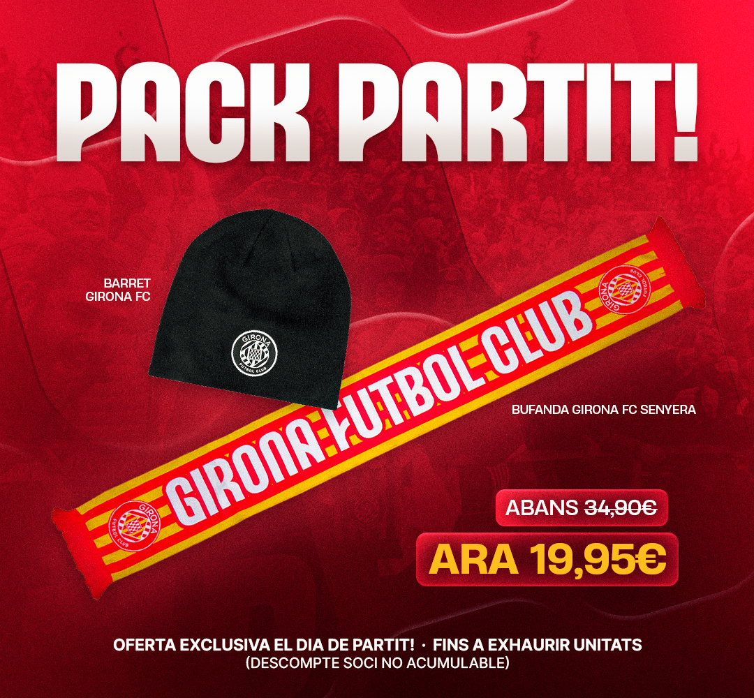 Oferta! 34,95€ Original price was: 34,95€.19,95€Current price is: 19,95€. In stock Pack dia de partit: Bufanda + Barret quantity Add to cart Category: Bufandes i Banderes Related products Bandera Oficial 17,50€ Add to cart Oferta! Bufanda Tossuts 16,95€ Original price was: 16,95€.4,50€Current price is: 4,50€. Add to cart Bufanda senyera 16,95€ Add to cart Bufanda ” GIRONA FC” Rosa 16,95€ Read more
